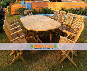Teak Furniture Manufacturer – Oval Double Extending Table Sets for 12 People